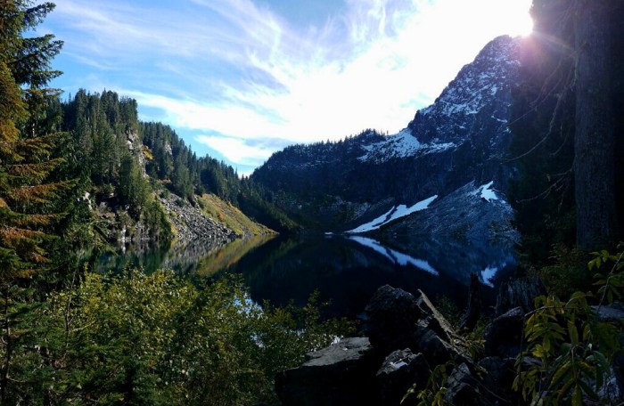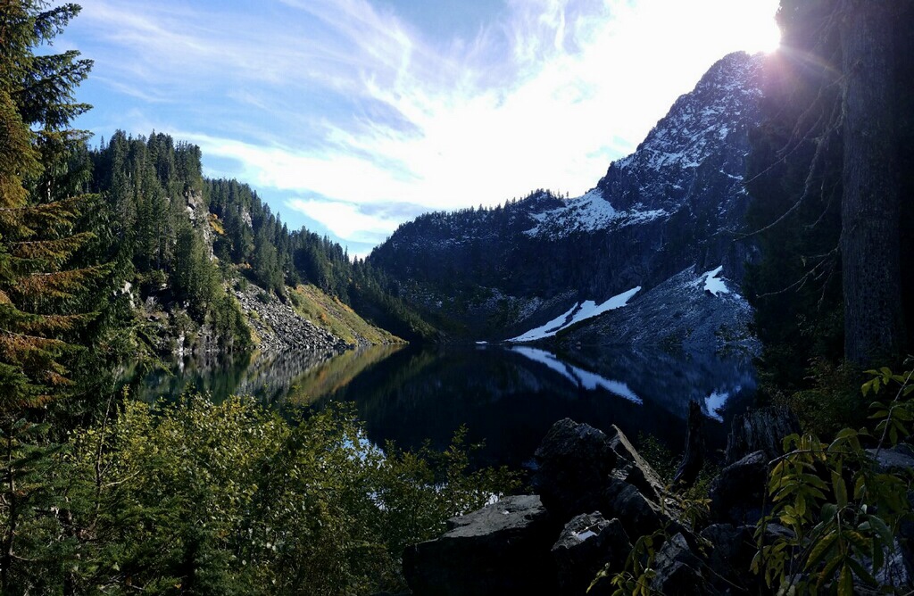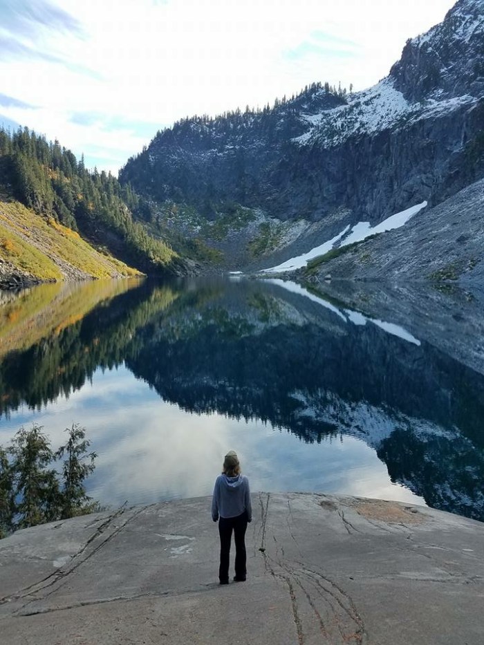 The sun was dropping just above the mountains once we finally arrived at Lake Serene. I cannot even describe the way I felt seeing the lake and sunlight peak through the trees once we emerged to the opening. It definitely took our breath away. All we could seem to do was laugh and look at one another in disbelief.
