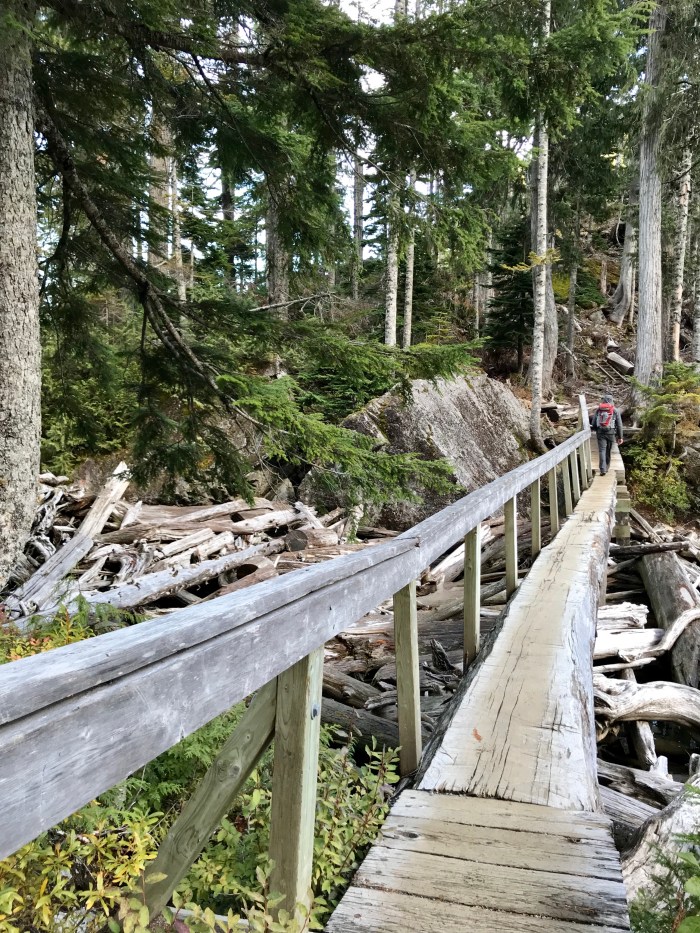 Across a log bridge and around the corner from the entry point there was a huge rock to enjoy a break right on Lake Serene. Once again, I was left absolutely floored. I just upped the previously top view of my life… that I experienced only a couple minutes prior! This place is so perfectly created, it doesnt even look or feel real… in real life. My favorite part was the mirroring landscape on the water with the transition of warm to cool on this mid-October day.